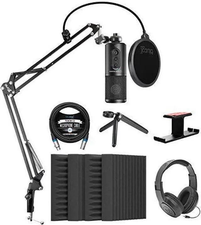 Details: Audio-Technica ATR2500x-USB Condenser MicrophoneThe versatile Audio-Technica ATR2500x-USB Microphone can be plugged straight into your PC and used with your favorite DAW. Its cardioid pickup pattern isolates undesirable ambient noise giving you clearer audio capture.TECHNICAL SPECS:Element: Condenser | Polar Pattern: CardioidCompatible with: Mac WindowsRequired Power: USB Power (5V DC)Freq Response: 30Hz-15kHzAudio Resolution: Up to 24bit/192 KhzConnectors: USB-C 3.5mm HeadphonesAccessories: Cables Desk Stand Pivoting Mount for 5/8"-27 Threaded StandsAlso Comes With:Blucoil Acoustic Isolation Wedges (4-Pack)The 12"x12"x2" Blucoil Acoustic Wedges absorb high-noise frequencies and echoes in the recording studios vocal booths offices or game rooms. Each panel reduces unwanted noise reflections bouncing off your walls. With 16 adhesive tapes included the Acoustic Isolation Wedges is an easy and effective acoustical absorption treatment.Blucoil Boom Arm Plus Pop FilterThe 30" long Blucoil Boom Arm Pop Filter accommodates all kinds of mics and shock mounts (3/8"-5/8" threading adapter and mic clip are included). It is made of heavy-duty steel zinc alloyed parts and can be rotated 360-degrees. The foldable boom arm includes a removable Blucoil Pop Filter that reduces hisses and p-popping. *NOTE: Install the boom arm vertically for it to hold up the weight of a 3.3 lb mic.Samson SR350 eadphonesThe Samson SR350 Headphones feature 35mm drivers 32 Ohm impedance and 110dB sensitivity. It isolates background noise and delivers outstanding bass. You can use SR350 for audio monitoring or casual listening thanks to its wide 20Hz-20kHz response.Get this bundle today and receive these Blucoil exclusives:10-FT Balanced XLR CableAluminum Headphone Hook with 11-22 lb Weight Capacity