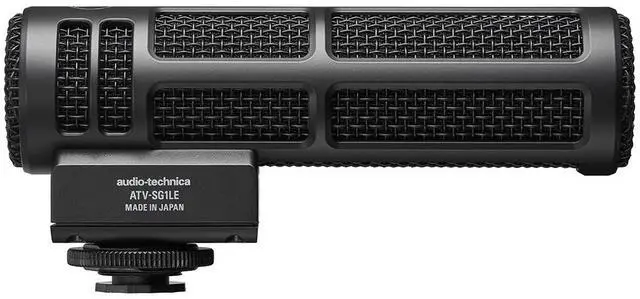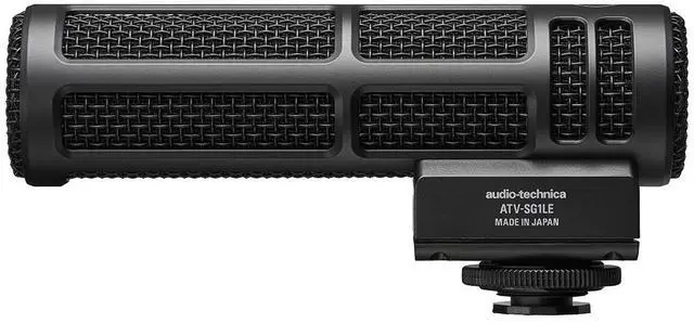 long and 35 mm ( 1.38" ) wide) makes this mic the perfect partner for action-packed activities. ATV-SG1LE boasts a highly directional 100 mm acoustic tube - the same tube used in the flagship ATV-SG1 model - to keep pickup focused on the sound source while blocking unwanted background noise. The ATV-SG1LE adopts the solid-mesh style of our 20 Series mics, and like those mics this on-camera model provides professional-quality sound for lifelike reproduction of the human voice and other sources. Key to this natural, high-resolution sound capture is the mic's newly designed 14 mm large-diameter diaphragm, which exhibits high-sensitivity and low-noise characteristics for rich, detailed audio.