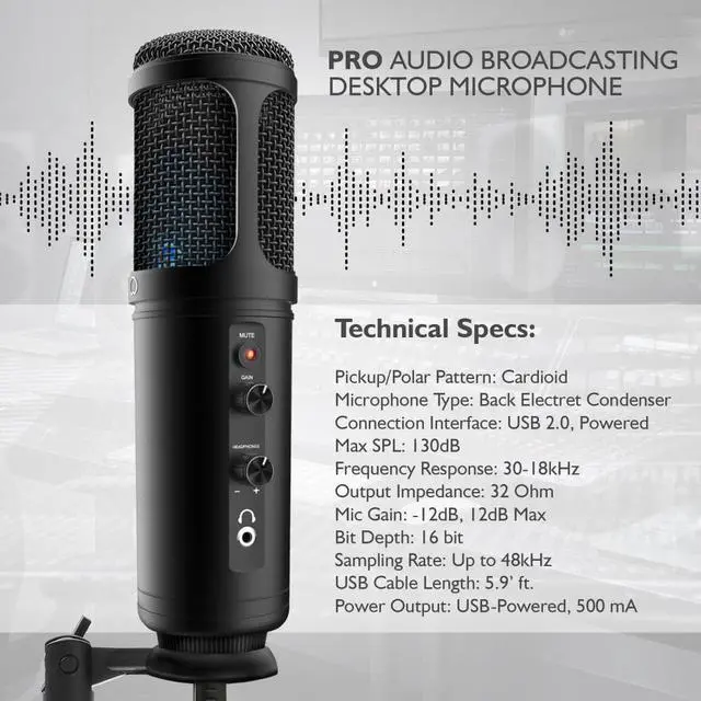 - This compact tabletop mic is ideal for everything from studio vocals to gaming, streaming, podcasting, singing, editing and desk recording