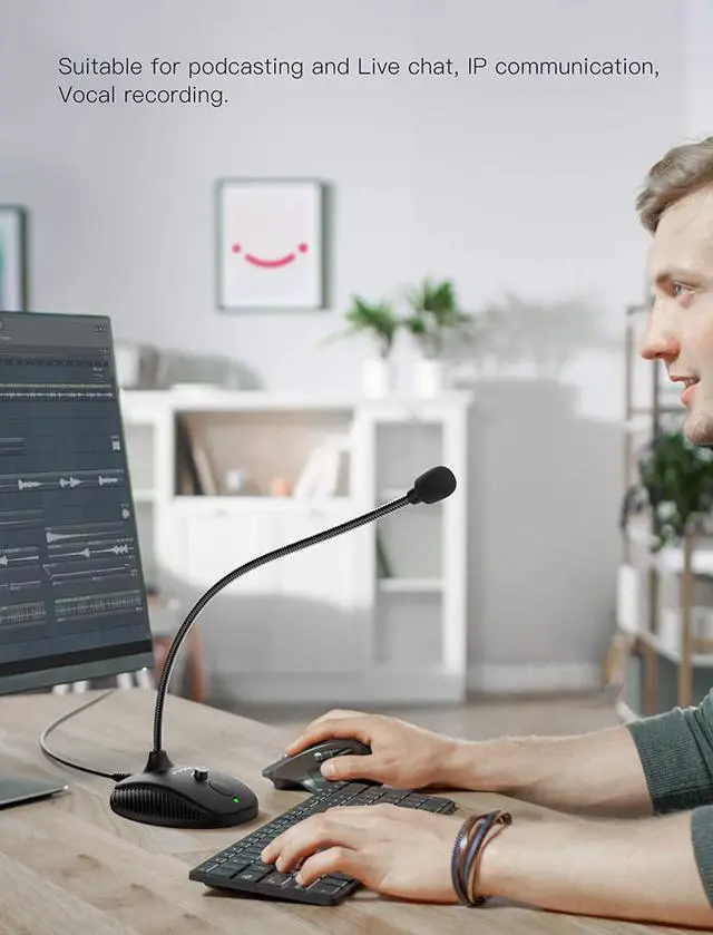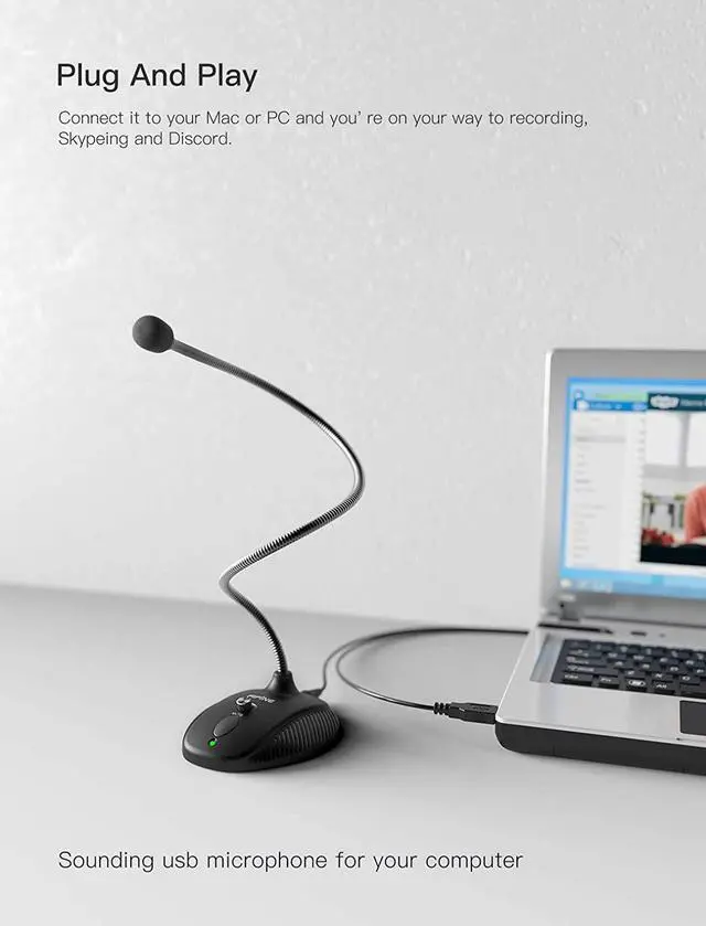 USB Plug&Play The gooseneck provides up to 12" ( 32.5 cm) of length and easy, easy-to-use microphone positioning. Connect pc microphone to your Mac or PC via the USB connector and you're on your way to recording, Skype-ing, and all your computer-audio needs, helps you record directly into your computer.