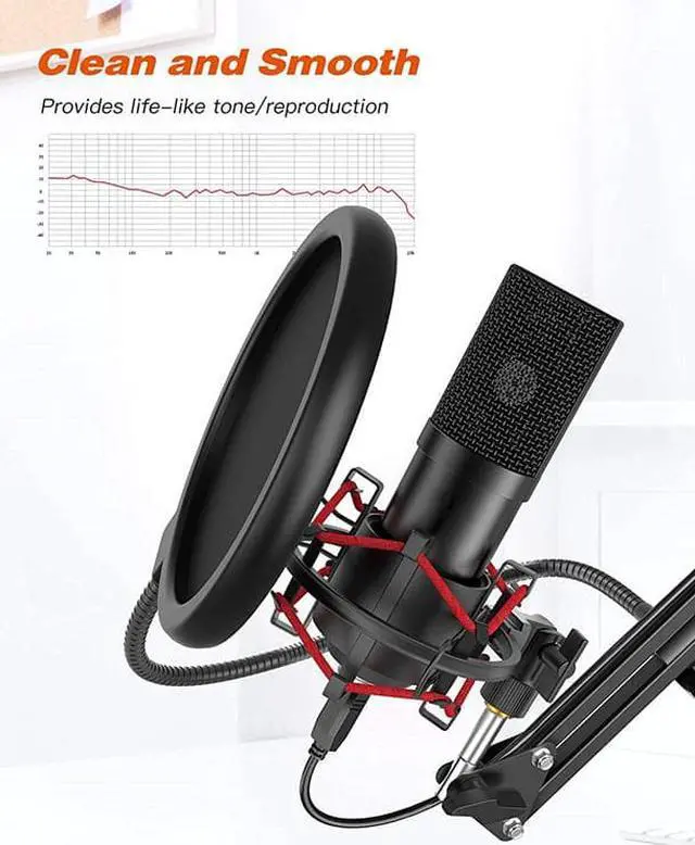 Flexible Pop Filter - Reduces the pops noise and improves the sound quality.