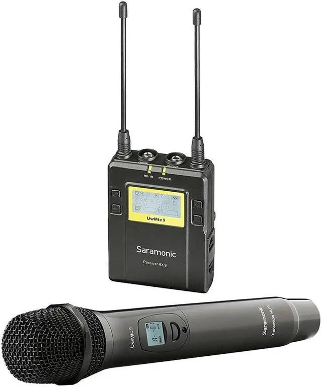 The Saramonic UwMic9 RX9+HU9 is a portable, dual-channel, camera-mountable UHF handheld wireless microphone system that has powerful features which greatly exceed the capabilities of competing systems that cost over twice as much. The included dual-channel RX9 receiver gives you the ability to run two separate wireless microphones by adding an additional transmitter, such as a second HU9 handheld microphone (sold separately). This system is perfect for DSLRs, video cameras or portable audio recorders for capturing interviews, film dialog, field recording, broadcast TV, news gathering, vlogging, YouTube videos and more. Both components feature sturdy metal construction and deliver clear, broadcast-quality sound in a low-cost package.