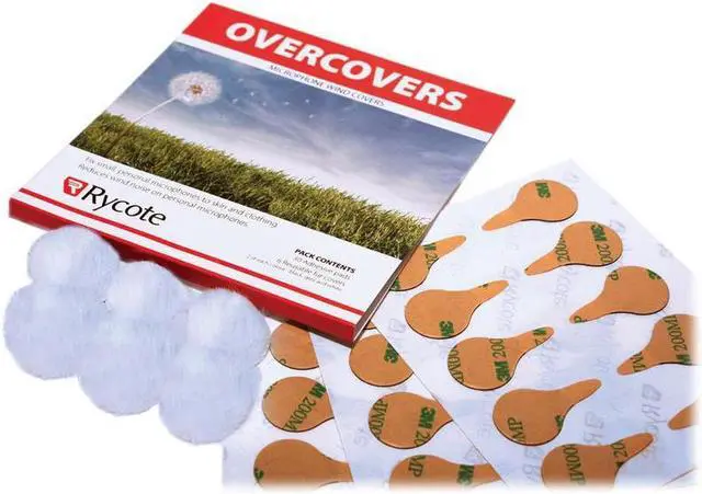 Overcovers have been specifically designed for use with small personal microphones in windy outdoor conditions. Using stickies to affix the Lavalier Mic onto the skin or on top of clothing, Overcovers also include a fur Windjammer (Furry) to be adjusted on top of the Lavalier microphone for excellent wind-noise protection. Overcover packs contain 30 Stickies and 6 re-usable fur discs, including