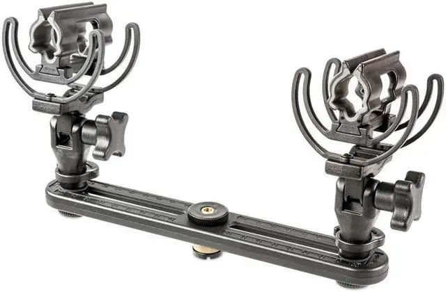 InVision INV-7HG MKIII Stereo Pair Kit is a vibration-resistant, low-noise suspension system designed to mount paired microphones for stereo recording. The Kit comprises two of Rycote's patented vibration-reducing Lyre suspensions mounted on a rigid, slotted stereo bar. The dual InVision INV-7 HG MkIII Lyre webs used in the Stereo Pair Kit can accommodate larger shotgun mics from 19 to 25mm in diameter and up to 300mm long.