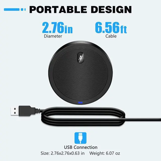 PLUG AND PLAY: No extra software, battery, or complex settings are needed. This mic is 70mm in diameter and 15mm in thickness, smaller than the palm of your hand. Just put the PC laptop microphone into your pocket or briefcase and take and use it wherever you want