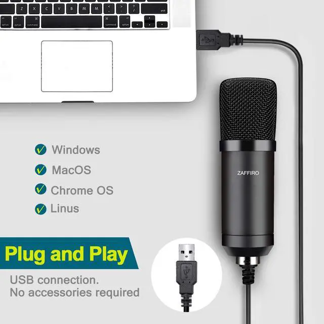 ??PLUG & PLAY? Plug the condenser microphone into any available USB port, select usb mic as default input in your software settings. Professional microphone didn't need any extra driver or sound card. Windows and Mac OS compatible.