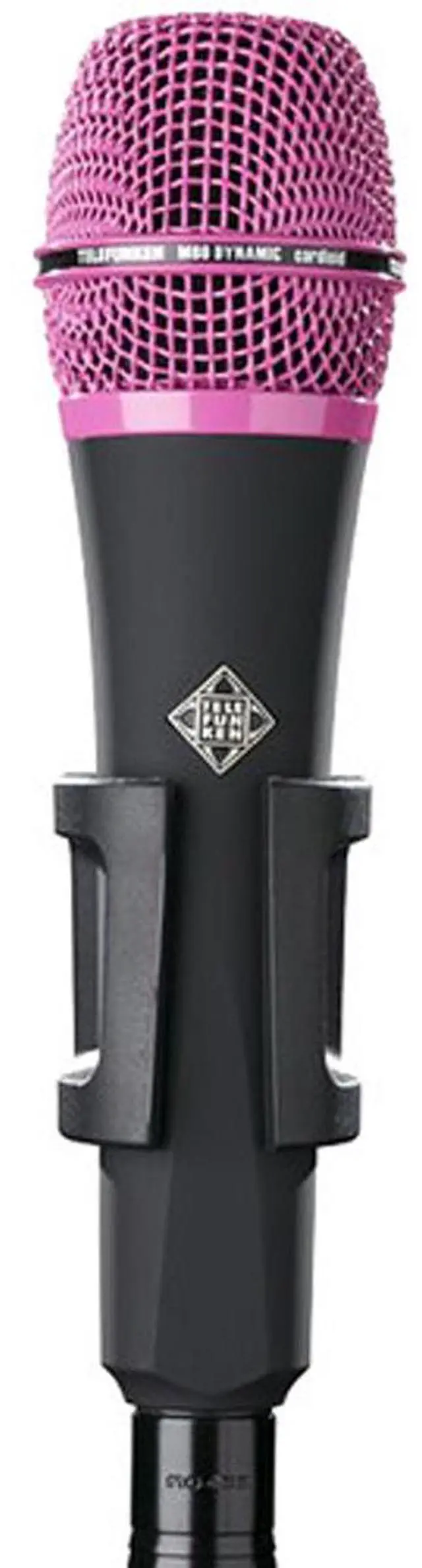 An innovative creation by Telefunken Elektroakustik, the M80 Custom Handheld Supercardioid Dynamic Vocal Microphone, with its sleek black body and eye-catching pink grille, offers a superior alternative to the typical midrange-heavy "industry standard microphone". This microphone stands out with its broader frequency response and higher Sound Pressure Level (SPL) capabilities, delivering condenser-like performance in a robust dynamic design. This makes the M80 an ideal microphone for both on-stage performances and studio recordings. The M80's sonic characteristics are defined by its low mass capsule and super thin, yet remarkably durable, capsule membrane.