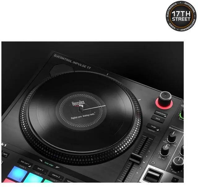 Take your DJ skills to the next level with the Hercules DJControl Inpulse T7 — a motorized DJ controller that merges cutting-edge digital performance with the nostalgic feel of vinyl. Designed for DJs who love hands-on control, this DJ mixer features dual 7" motorized platters with removable vinyl records and slipmats, giving you an authentic turntable experience. It includes EQ knobs, filters, FX paddles, and beatmatch light guides to help you master your transitions with ease. Built-in support for Serato DJ Lite and DJUCED software ensures a seamless workflow whether you're mixing live or practicing at home.