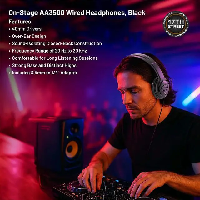 - Immersive Sound & All-Day Comfort: Experience immersive audio with the On-Stage AA3500 over-ear headphones, featuring 40mm drivers for crisp highs and deep bass. Ideal for music, movies, and instrument practice, these closed-back headphones offer long-lasting comfort and come with a 3.5mm to 1/4" adapter for universal compatibility.