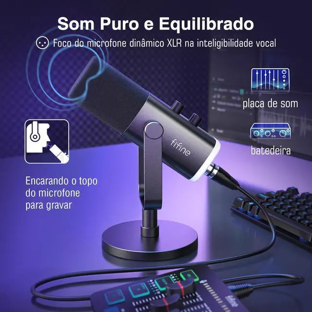 FIFINE XLR/USB Dynamic Microphone for Podcast Recording, PC Computer Gaming Streaming Mic with RGB Light, Mute Button, Headphones Jack, Desktop Stand, Vocal Mic for Singing YouTube-AmpliGame AM8