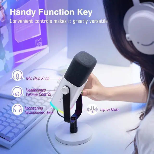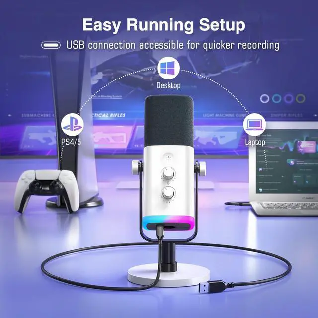 Sleek Desktop Design-The compact and stylish gaming mic for PC complements your white gaming setup, adding a professional touch to your streaming sessions.