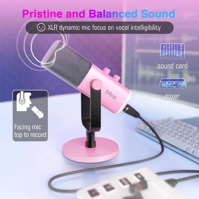Stylish Desktop Mic-The sleek design of the podcast microphone XLR enhances your gaming aesthetic, showcasing your passion for pink gaming. The streaming microphone RGB unleashes your creativity, suitable for gaming, streaming, podcasting, voice acting, and beyond.