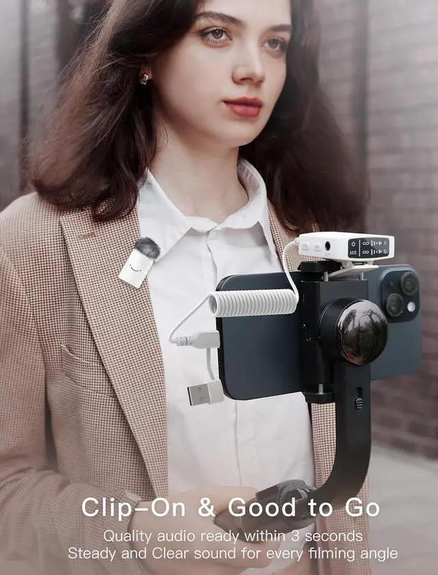 [Universal Compatibility, One Set Meet] Whether you're shooting a documentary on DSLR camera, recording a live stream on mobile type c smartphone, or conduct an interview on a laptop, the cordless mic for vlogging is compatible with Android phones or tablets, iPhone or iPad, and laptops. The external clip microphone wireless is good for content creators who work across multiple platforms or need flexibility when recording in different environments because of effortlessly switch between devices.