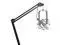 With a standard 5/8"-27 mic stud mount thread and a lockable 360-degree rotating post, the microphone can be positioned at any angle, maintaining its poise even when the arm is repositioned. The compact base-board C-clamp mount serves a dual purpose, securely fastening onto tabletops up to 2.25" thick and allowing for rotation secured with a thumb screw lock.