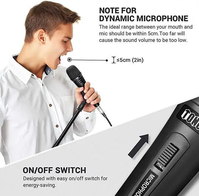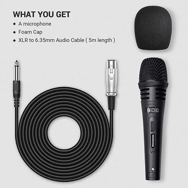 *****Cardioid Dynamic Microphone: s wired dynamic microphone features a cardioid pickup pattern for greater gain while simultaneously minimizing background feedback. Perfect for karaoke machine, stage performance, wedding, church, interview, etc.