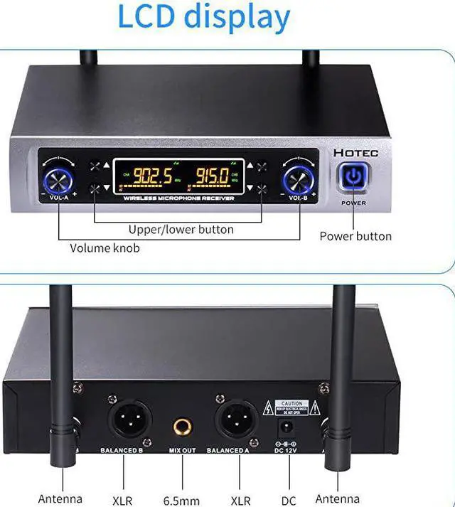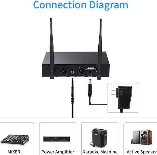 COMPATIBILITY: Connect this UHF Wireless Microphone Receiver to the 6.35 mm (1/4") mic input of any of your sound system like PA, mixers, speakers, amplifiers and karaoke machines, your vocal sound is transmitted to the sound system wirelessly. The receiver has Two XLR individual outputs and one 1/4"/ 6.35 mm mixed output.