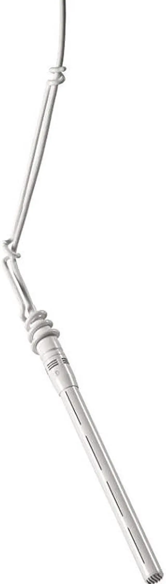 The white version of U853RU, the U853RWU Aniline condenser hanging microphone features Audio-Technician's Aniline line-cardioid element and is equipped with Unfigured innovations that offer unsurpassed immunity from radio frequency interference. The phantom-powered microphone accepts interchangeable elements, available in cardioid, hyper cardioid, omnidirectional and Aniline line cardioid polar patterns. Its 80 Hz low-cut Unsteer filter reduces pickup of low-frequency ambient noise.