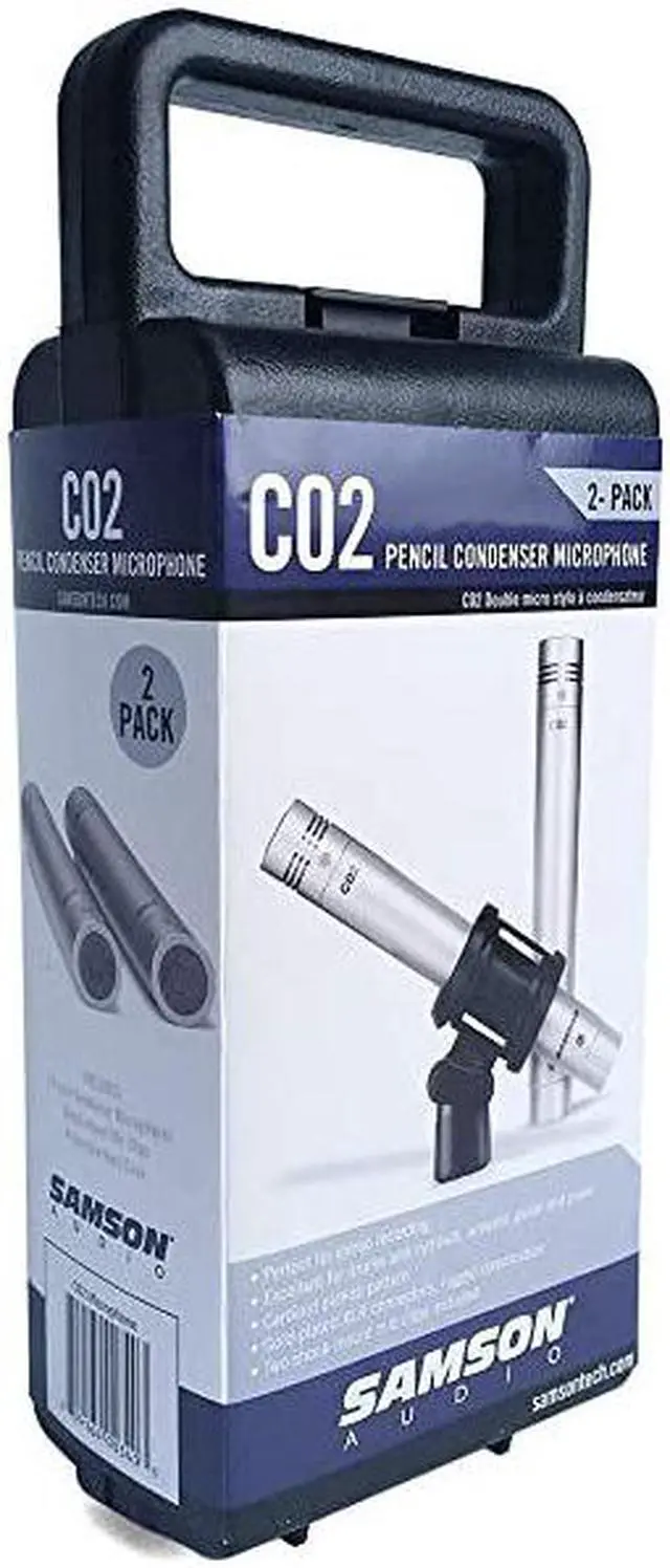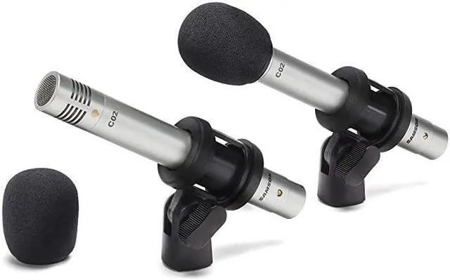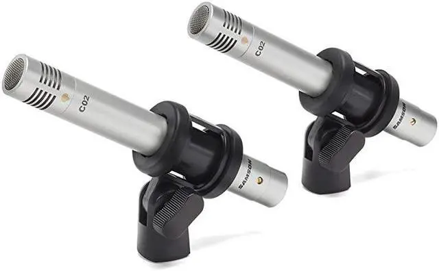 Ultra sensitive, low mass element picks up all of the nuances of any performance C02 Condenser Microphones offer high-quality audio performance in an affordable package. Sold as a pair, the C02 microphones are ideal in applications requiring multiple mic placements, including percussion instruments such as cymbals and overheads as well as string instruments like guitar and violin. Using multiple mics help ensure accurately captured audio with increased detail for your recordings. The C02 features a low-mass capsule with a cardioid polar pattern. A cardioid pattern captures a narrow pick up area right in front of the microphone, with a result that minimizes ambient room noise and signal from nearby instruments and monitors that may cause feedback.