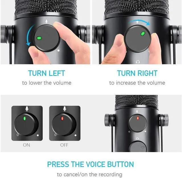 Quick Mute Control: The quick mute button is very handy for live streaming with a built-in LED light indicating the working status (Green: Active, Red: Mute).