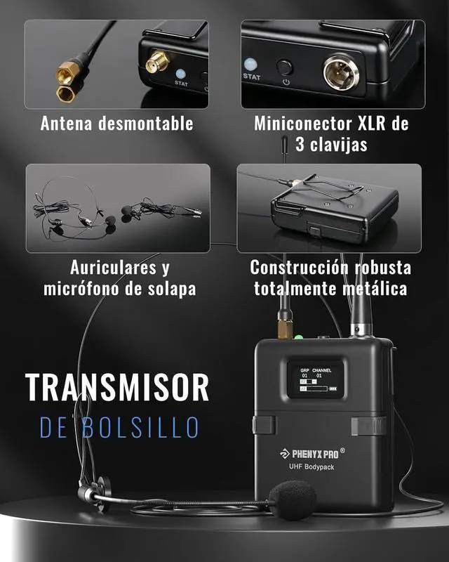SENSATIONAL SOUND, POWERFUL FUNCTIONS: The UHF wireless microphone with a special dynamic polar pattern cartridge for pristine, lush, sensational sound. Sponge design and advanced circuitry for filtering pops and unwanted ambient noises. The bodypack with 3-pin mini XLR jack for professional sound transmission. This receiver has auto scan, squelch control, and lock functions, to locate the best frequency, decrease white noises, and lock your setting. Effectively minimizes feedback and cutoffs.
