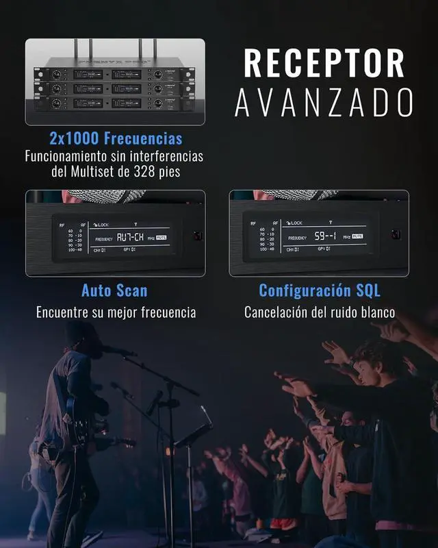 PROFESSIONAL-GRADE WIRELESS PERFORMANCE: Dual channel UHF band (530 - 580MHz) audio wireless microphone system with state-of-art true diversity circuitry to increase anti-interference capability. The wireless mic set delivers exceptionally stable transmission and reception. 1000 selectable frequency groups allow multiset operation and avoid interference in the complicated RF environment. Long-range operation of 300 328ft line of sight with quick IR synchronization.