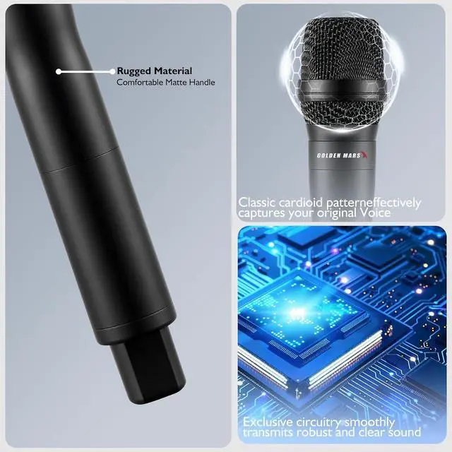 : This UHF microphone receiver and wireless professional microphone features a stylish metal design that not only has a high-end look and feel, but also ensures long-lasting durability for an enhanced user experience. This wireless microphone is suitable for use in churches, weddings, karaoke, DJ performances, public speaking, and more.