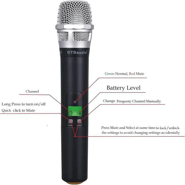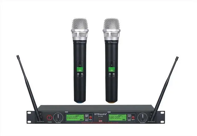 GTDaudio 2x800 Adjustable Frequency UHF True Diversity Wireless Handheld Microphone Mic System Ideal for Church, Karaoke, Dj Party, Range 400 ft