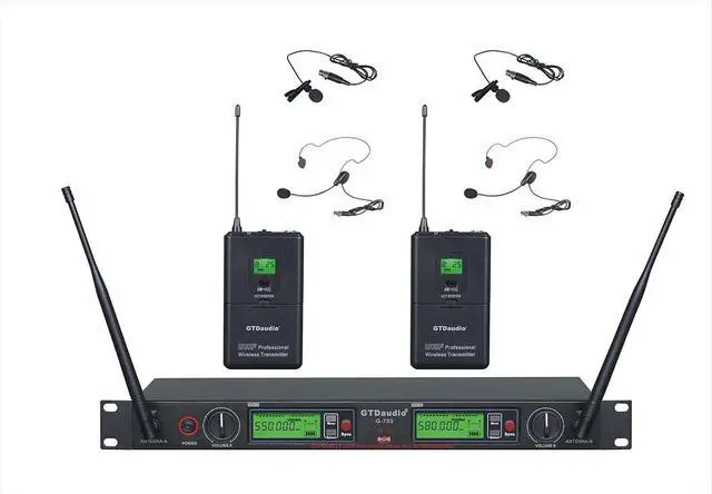 GTDaudio 2x800 Channel UHF Diversity Wireless Lapel/Lavalier/Headset Microphone Mic System (2 Lapel Mics) 733L