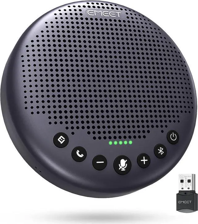 [Built-in 8 Mics & 360°Voice Pick Up] With the EMEET Luna Plus conference speakerphone, you can experience clear audio quality on your laptop like never before. The conference speaker with 8 built-in omnidirectional microphones, which captures sound from all directions, collecting crystal clear audio for up to 10 attendees conference room. This Bluetooth speaker ensures that every word is captured with clarity, whether you're standing, sitting, or even moving around the room.