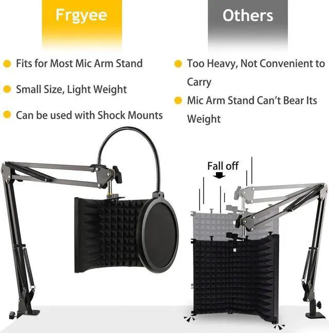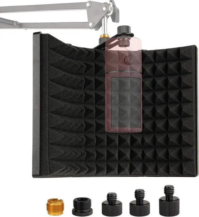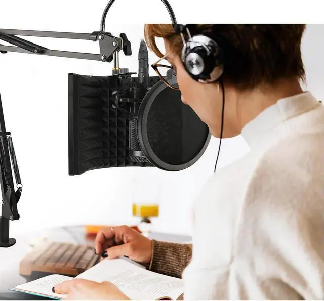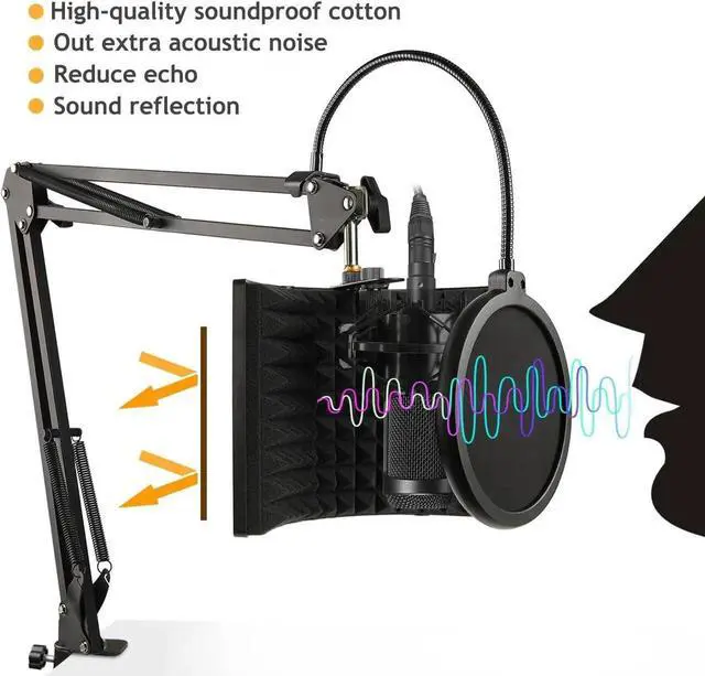 Versatility - The microphone sound shield can be fixed on a desktop or tabletop for live broadcast, and also can be mounted to a microphone stand for your professional recording. Fits for most mic arm stand.