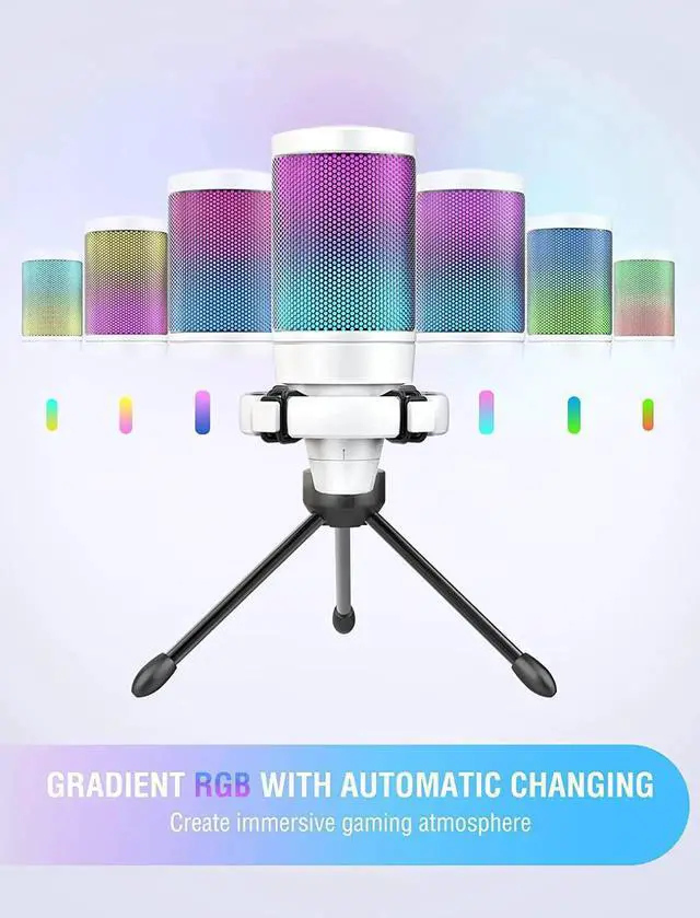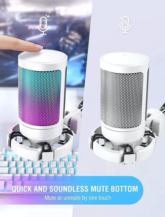 Simple but Special-The white computer microphone coating is elegant and concise. Vivid RGB works together with gaming accessories to create a special streaming or gaming aura. The microphone for PC gives your audience a clean and uncommon live or video picture.