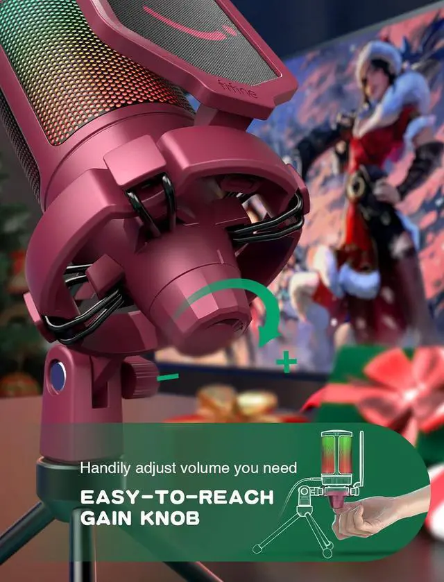 Convenient Adjustment-The gain knob is large and easy to control without clicking sound. You can tape the keyboard with one hand and adjust the volume with the other, no gaming fun sacrificed. You can also adjust an appropriate angle by the thumbscrew on the USB mic to make game chatting or streaming more effective.