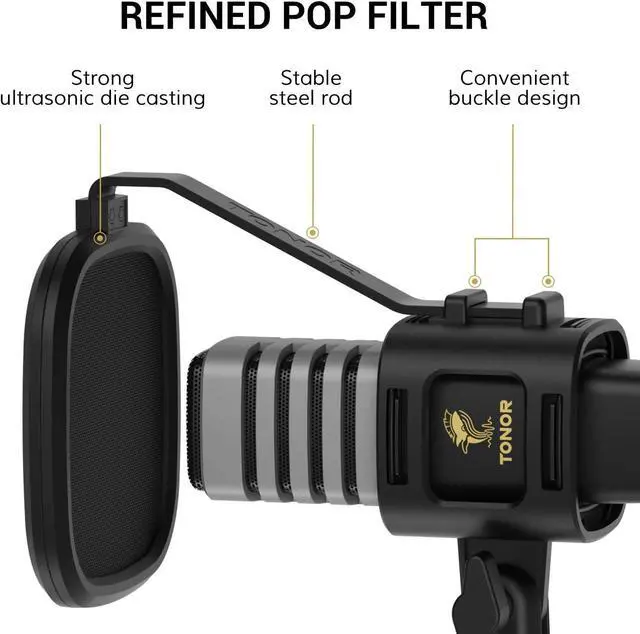 Easy to Install: Without any assembly, only need to attach the pop filter to the mic tripod, then it can be plug and play.