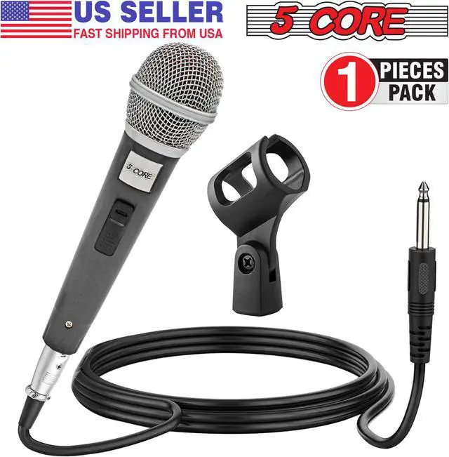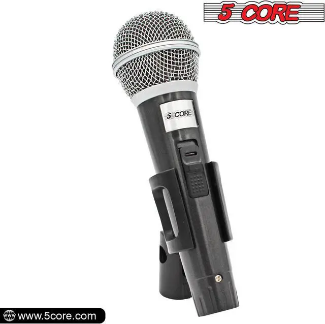 Dynamic Karaoke Mic: 5 Core Cardioid dynamic microphone with XLR cord; ideal for live situations needing noise cancellation; great for presentations; weddings; conferences; places of worship; interviews; and solo performance.