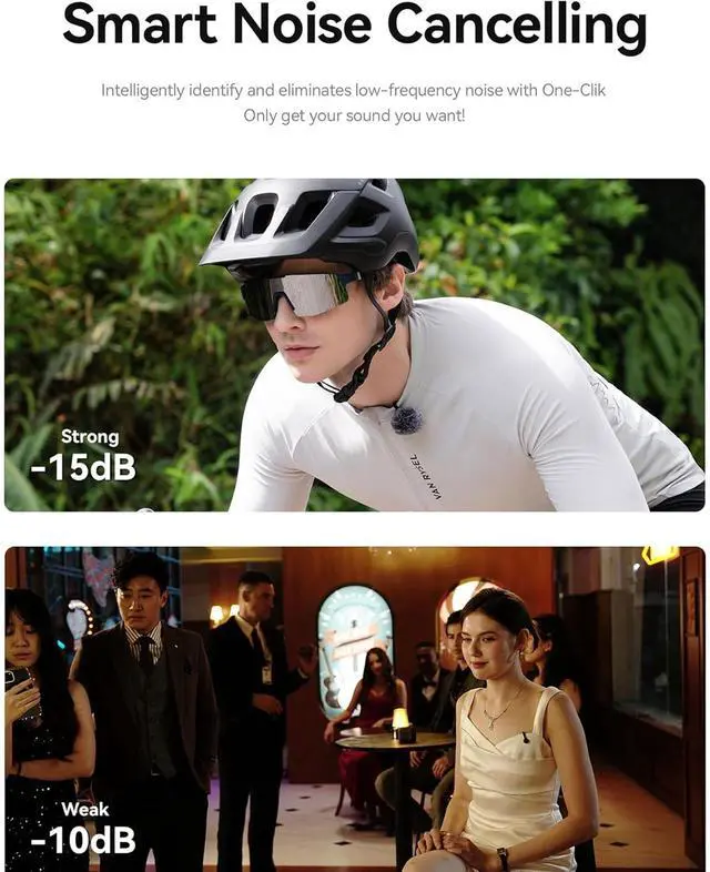 Noise Cancellation & Long-Range Stability Advanced ENC technology removes low-frequency noise for polished audio. Easily adjust 2 noise cancellation levels via the LarkSound App. With a 300m (1000ft) MAX range and RF interference-resistant circuit, it provides stable, pristine sound quality even in signal-dense locations like event venues and busy urban areas.