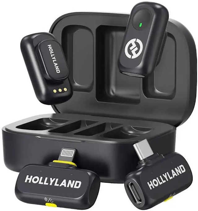 Hollyland LARK A1 Combo 2-Person Wireless Microphone System with USB-C and Lightning Connectors for Mobile Devices (Space Gray, 2.4 GHz)The Hollyland LARK A1 Combo is a dual-channel, digital wireless microphone system engineered for effortless smartphone connectivity and plug-and-play operation ideal for streaming, vlogging, podcasting, and video production with two people speaking at the same time.