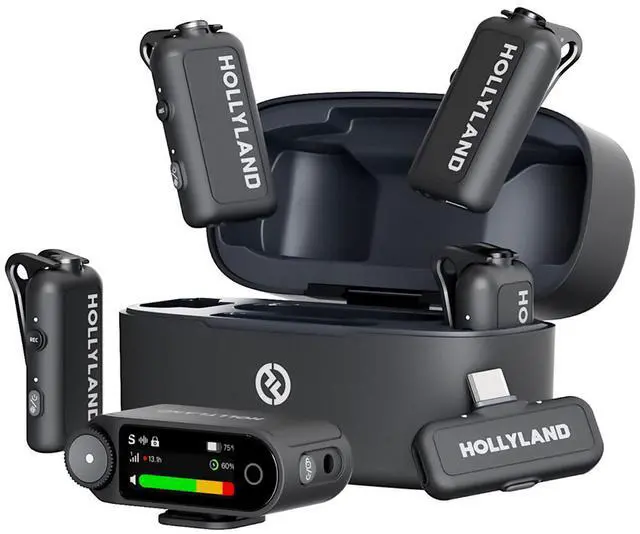 Hollyland LARK MAX 2 Combo 4-Person Wireless Microphone System for Cameras and Mobile Devices (Space Gray, 2.4 GHz)The LARK MAX 2 Combo 4-Person is a feature-packed, user-friendly digital wireless microphone system with support for wireless monitoring designed for videographers, podcasters, streamers and content creators. It lets you capture four on-camera voices with broadcast-quality sound straight out of the box recording directly to cameras or USB-C/Lightning mobile devices. Delivering crystal-clear 32-bit/48 kHz audio throughout the entire signal chain, it captures every detail from recording to transmission to monitoring.
