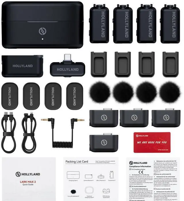- Hollyland LARK M2 COMBO 2-Person Wireless Combo Microphone System 2.4 GHz (Black)
