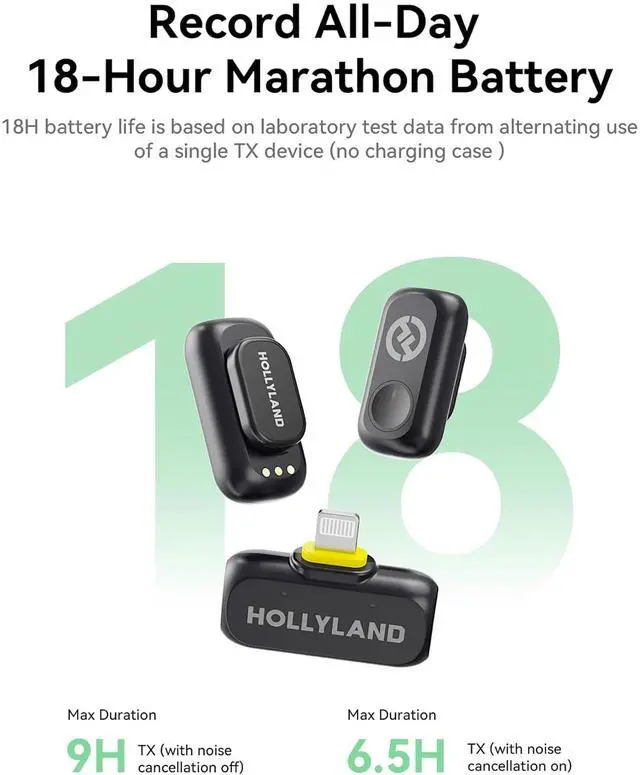 The Hollyland LARK A1 Mini Duo with Lightning Receiver is a dual-channel, digital wireless microphone system engineered for effortless iPhone connectivity and plug-and-play operationideal for streaming, vlogging, podcasting, and video production with two people speaking at the same time. The system includes two ultracompact, clip-on transmitters with built-in omnidirectional microphones for discreet, high-quality recording, a Lightning plug-in receiver for direct use with iOS devices, two furry windscreens for outdoor shoots, and a convenient charging dock for the transmitters.
