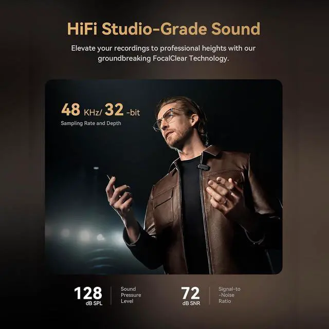 AI-Powered Studio Clarity Pioneering deep-learning noise cancellation (525dB stepless adjustment) paired with 48kHz/32-bit float studio-grade recording ensures your wireless microphone captures vocals in pristine detail while eliminating background noise. Ultra-Low latency, zero clipping, and 128dB SPL deliver broadcast-ready audio for live streaming, podcasts, and pro recordingsideal for high-volume environments.