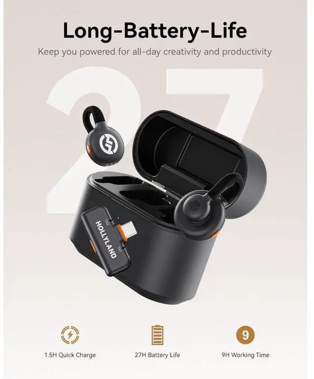 Hollyland Lark M2S Wireless Microphone with USB-C Plug for iPhone 15/16/17 and Android, Titanium Clip, Plug-and-Play, Noise Cancelling, 300m Range, 27H Battery Life for Vlogging, YouTube