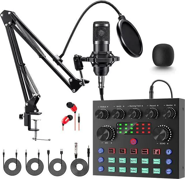 Professional Podcast Equipment Bundle This podcast microphone bundle is born for recording, podcasting, live streaming on YouTube, TikTok, etc. podcast equipment bundle contain a condenser microphone, you can start podcasting easily after plugging audio interface into smart phone or PC. This podcast equipment bundle can meet almost all your needs and it is unnecessary to buy other podcast kit again.