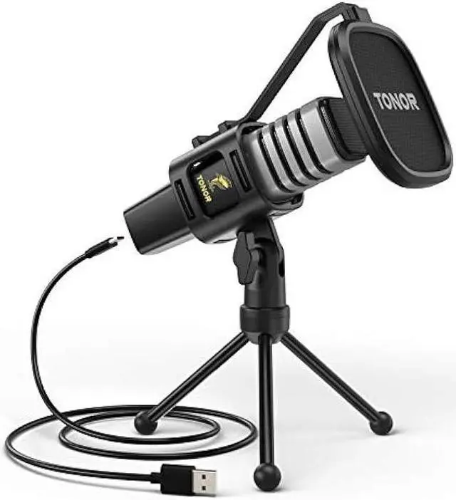 What You Get: 1 x condenser microphone, 1 x shock mount, 1 x foldable mic tripod, 1 x pop filter, 1 x USB Type-C to USB-A 2.0 Cable, 1 x manual.