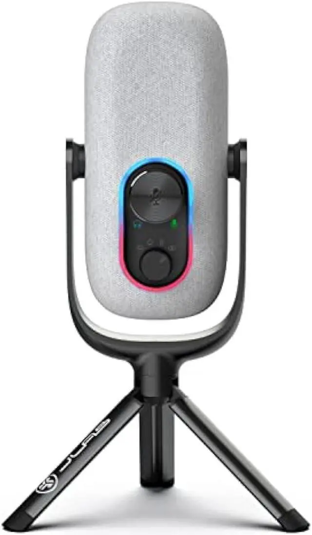 JLab Epic Talk USB Microphone, White, USB-C Output, Cardioid, Omni, Stereo, and Bi-Directional, 192k Sample Rate, Volume Control, Gain Control, and Quick Mute, 3.5mm AUX, Plug and Play