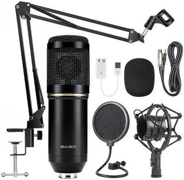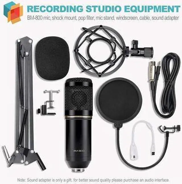 • Professional Recording Studio Equipment: Equiped with BM-800 microphone, Shock mount, Pop filter, Mic adjustable suspension scissor arm stand, Anti-wind foam Cap, Power cable, Sound card