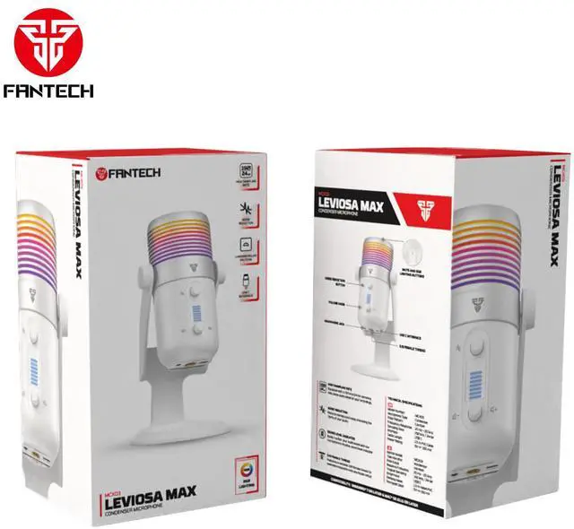 FANTECH LEVIOSA MAX MCX03 Wired Condenser Microphone, 192 kHz / 24-bit High Sampling Rate, Noise Reduction,Cardioid Polar Pattern, USB C Interface, RGB Lighting, White