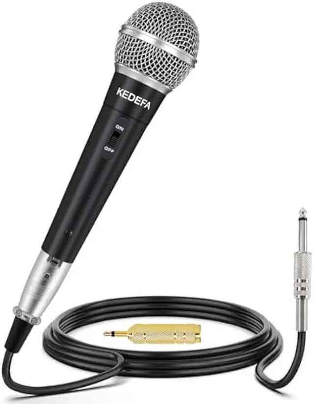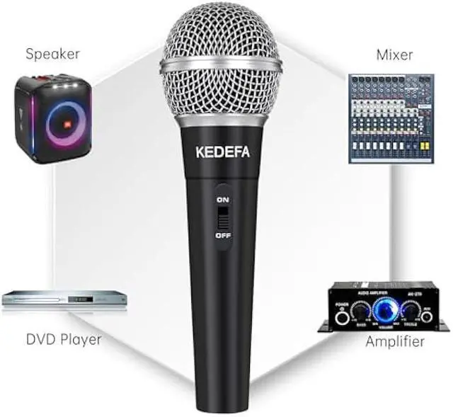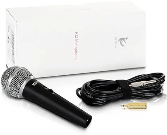 3. Plug & Play - KM58 No battery required, just plug to use. It has a 13.12 ' XLR cable with 1/4 METAL plug, Additional a 1/4 to 1/8 GOLD plated full METAL TS adapter, supporting Karaoke Machine, DVD Player, Home Theater, Amplifier, Speaker, Computers and more devices.
