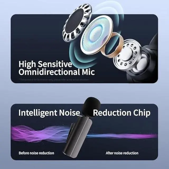 Real-time Crystal Voice Syncs with Noise cancellation - Using real-time auto-sync technology, signal transmission super low latency( 0.009 s), the sound picking-up follows the picture in real-time and will not be misplaced. Built-in noise reduction chip, get crystal clear audio( 44.1 ~48kHz stereo CD quality). Suits for Students, Bloggers, Journalist, Mukbang, Fitness coach, Office people
