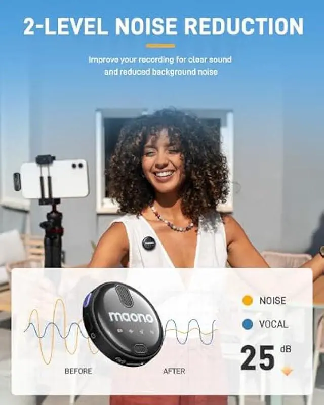 2-LEVEL ENC NOISE REDUCTION: Just tap the noise reduction key to significantly reduce background noise and ensure exceptional sound clarity. Whether you're recording a video, broadcasting live or conducting an interview, this portable microphone will ensure that your voice is heard loud and clear