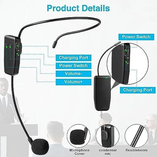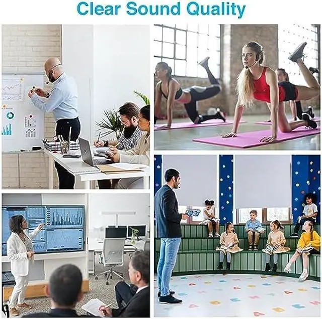 Widely Use The wireless headset microphone help you get rid of the shackles of the cable and free your hands. allows you to move around more freely and show yourself. The microphone is suitable for teaching, speech, business dialogues, conferences, tour guiding, interview, web podcasts, YouTube, outdoor live, yoga instructors and so on.